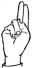На ћирилици написано МИРЈАНА МИСКИН састоји се из 13 слова [?]. Исписано ћириличном једноручном азбуком за глувонеме: